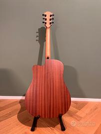 Questa chitarra acustica ha un suono brillante e ricco di medie frequenze ed è ideale per chi cerca uno strumento che lo possa accompagnare nella composizione di canzoni, e per chi intende accompagnarsi con gli accordi mentre canta. È perfetta per chi vuole incominciare ma anche per chi, sapendo già suonare, cerca una chitarra con una sua personalità e che possa comunque essere portata in giro senza troppe preoccupazioni. La chitarra ha il top in abete massello e il fiore all’occhiello è il bellissimo design della paletta con i chiavini per l’accordatura in colore nero.