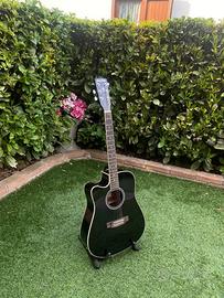 Chitarra Acustica Elettrificata Mancina – Harley Benton – Completa di Custodia Vendo splendida chitarra acustica elettrificata MANCINA Harley Benton, perfetta per chi cerca uno strumento versatile e dal look elegante. 🎸Caratteristiche principali: •Modello acustico con cutaway per un accesso più comodo ai tasti alti •Elettrificata: pronta per essere collegata ad amplificatore o impianto •Finitura nera lucida molto elegante •Meccaniche precise e stabili •Suono caldo e bilanciato, ideale per diversi generi musicali 🧰 Incluso: •Custodia morbida imbottita (come da foto), perfetta per trasporto e protezione Condizioni: •Usata ma in ottime condizioni •Sempre tenuta con cura