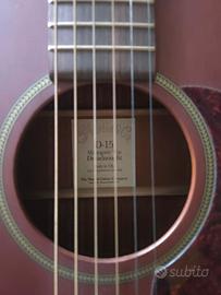 Chitarra acustica Martin D15 Mahogany Top Dreadnought in mogano, anno 2000, suonata raramente in casa, mai dal vivo. Amplificazione passiva con pickup piezoelettrico Fishman al ponte. Suono potente e bassi profondi. Perfetta anche abbinata ad un preamplificatore esterno o direttamente al mixer. Alcuni segni sul fondo, ma in condizioni perfette. Con custodia originale. Vendo per inutilizzo. Ritiro a mano o spedizione solo a carico del destinatario.