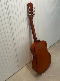 Chiatarra acustica marca OQAN, modello QGC-10, in legno chiaro, completa di fodero nero con spallaccio per il trasporto. Chitarra e fodero sono NUOVI (MAI USATI).
