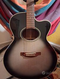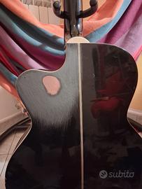 Come da foto, chitarra acustica piccola e maneggevole, con preamp incorporato. Evidenti danni estetici, ma funzionante; vista e piaciuta