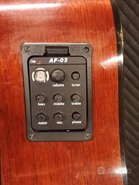 Chitarra acustica vintage SAMICK Made in Korea, amplificata con preamp sulla fascia co accordatore incorporato. Suono molto equilibrato, e manico comodo. La chitarra si può visionare e provare, senza impegno, presso il mio studio a Fiano Romano (vicino all'uscita A1 Roma Nord) a 10 minuti da Porta di Roma. Possibilità di spedizione con corriere espresso