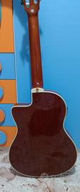 Formato: Nylon Cutaway Top: Abete Fasce e fondo: Mogano Manico: Mogano con truss rod Profilo: Low Profile Tastiera: South American Roupanà Capotasto: 52mm Meccaniche: Aperte Scala: 650mm Elettronica: Eko G03 Ponte: South American Roupanà Finitura: Naturale con scatola,utilizzata poche volte