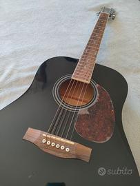Chitarra acustica Tenson D 10 F501 316. Colore nero con bordi bianco panna.