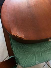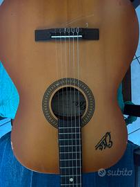 Vendo chitarra acustica vintage Eko Modello P2, storico strumento "Made in Italy" prodotto a Recanati tra gli anni '60 e '70. Formato "parlor", un classico pezzo di modernariato musicale italiano. Dettagli e Condizioni: • Modello: Eko P2 originale. • Stato generale: La chitarra conserva il suo fascino vintage, ma necessita di attenzioni. Segnalo alcune sbeccature della vernice sui bordi della tavola armonica dovute all'età. • Danni da segnalare: Come chiaramente visibile in foto, è presente una rottura/spaccatura importante sul bordo inferiore del fondo. Il ponte presenta inoltre un sistema di aggancio delle corde non originale. • Destinazione d'uso: Lo strumento viene venduto come da aggiustare È l'ideale per chi cerca un progetto di liuteria, per chi sa fare piccole riparazioni o per chi desidera un bellissimo pezzo d'arredamento dal sapore retro.