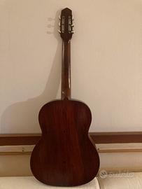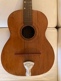 Chitarra antica in stile manouche non saprei dire l’esatto periodo e ne il luogo di produzione perche priva di etichette .. la chitarra ha avuto vari restauri cone si vede attualmente ha delle corde vecchissime che però le danno un bel aspetto . Per suonarla è ovviamente necessario il cambio
