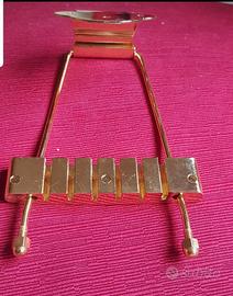 Nuovo in confezione, ponte per chitarra arch top tipo Gibson 175. In acciaio, finitura gold . Misure ingombro in foto