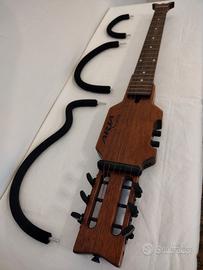 Chitarra SINSONIDO corpo e manico in mogano, tastiera in palissandro, corde in metallo, capotasto 43 mm, pick-up SoloEtte Original (made in U.S.A.), preamplificatore con controllo di volume e tono, cuffia e borsa in dotazione. Finitura MH mogano.