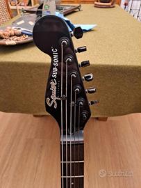Vendo chitarra elettrica baritona Squier Subsonic by Fender, made in Korea, fuori produzione e introvabile in queste condizioni. La chitarra e' praticamente nuova, ha ancora la pellicola sul tappo nel retro; l'ho comprata anni fa nuova da Alto Volume, l'ho usata pochissimo per mancanza di tempo e l'ho tenuta sempre ben custodita. Consegna solo a mani in zona Trecastagni o Catania.