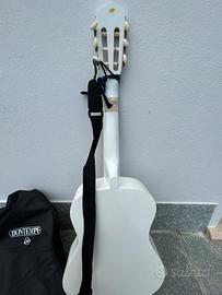 Chitarra Bontempi, bianca, completa di custodia e tracolla. Ottima per imparare a a scuola.