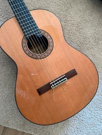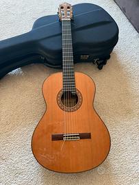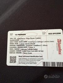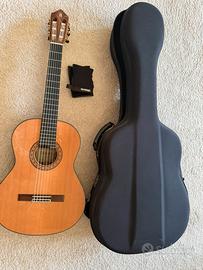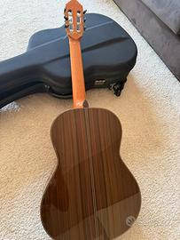 Chitarra Classica Alhambra 10P PREMIER top cedro con custodia Il modello 10 Premier è costruito con una tavola armonica in cedro di primissima qualità e con un incatenatura frutto di un lungo studio, sviluppato dai liutai Alhambra che porta a questo nuovo strumento un miglioramento del suono "classico". Questo nuovo disegno delle barre e i dettagli artigianali apportati aumentano le prestazioni di questo strumento. Le finiture di questo modello, denotano un importante lavoro artigianale e una immagine molto raffinata. Dodici fori sul ponte, capotasto e sella del ponte in osso, una meccanica molto efficiente e una doppia linea verde nel profilo, donano al modello 10 Premier, qualità estetica e allo stesso tempo praticità e un ottimo e adeguato suono. Il disegno del manico "ergoneck" favorisce la comodità e la facilità del chitarrista in tutta la sua lunghezza, la tastiera si prolunga nella buca della tavola armonica per poter posizionare il 20° tasto. Una miglioria sollecitata dai chitarristi per poter interpretare tutte le composizioni presenti oggi negli spartiti internazionali. Una chitarra moderna, che risponde straordinariamente a tutte le richieste ed esigenze del chitarrista odierno. Top in cedro rosso massello Fasce e fondo in palissandro indiano massello Manico in cedro spagnolo rinforzato con ebano Tastiera in ebano Scala 650 mm Larghezza capotasto 52 mm Meccaniche lusso placcate oro Corde D’Addario EXP 44 Extra Hard Tension Finitura Lucida (Tavola finita in lacca nitro) Astuccio alta protezione