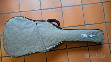 Chitarra Classica Alhambra 1C con CUSTODIA imbottita, in condizioni eccellenti in quanto nuova e sostanzialmente inutilizzata, in cedro e mogano con tastiera in palissandro, con accessori inclusi (pedale poggiapiedi).
