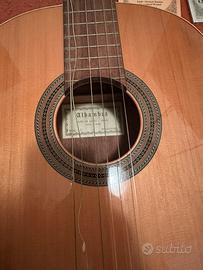 Chitarra Alhambra mod 1C con leggio, poggia piede, metronomo e con alcune corde di ricambio! Unico difetto purtroppo lo trovate nelle foto. Prezzo trattabile.