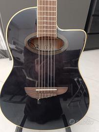 Mai usata Colore: See Thru Black Forma Corpo: Eko Nylon cassa ribassata cutaway Materiale Top: Abete Materiale Fasce e Fondo: Mogano Materiale Manico: Mogano Materiale Tastiera: South American Roupanà Forma Manico: Eko Low C Larghezza Capotasto: 52 mm Radius: flat Scala: 650 mm Numero Tasti: 20 Tipologia Tasti: Small - 1,8 mm Materiale Ponte: South American Roupanà Finitura Corpo: Gloss Finitura Manico: Gloss Meccaniche: Eko Open Classical Elettronica: Eko G03 Controlli Elettronica: Accordatore, pitch note, eq a 3 bande, inversione di fase e volume di uscita