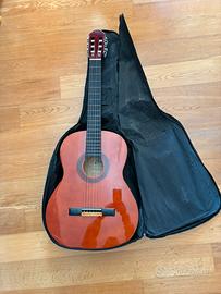 Chitarra classica in legno, completa di custodia per il trasporto. Condizioni pari al nuovo