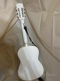 Chitarra classica dal design originale e creativo, caratterizzata da una raffinata finitura bianca arricchita da decorazioni a tema musicale che la rendono unica e accattivante. Un modello perfetto per chi desidera avvicinarsi al mondo della musica con uno strumento esteticamente curato e funzionale.