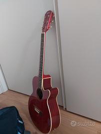 Vendo chitarra classica marca Ibiza, acquistata circa 12 anni fa ma utilizzata pochissimo. La chitarra si presenta in ottime condizioni generali, con un bellissimo colore rosso lucido e corpo con cutaway, ideale anche per raggiungere facilmente i tasti più alti. È sempre stata tenuta con cura, presenta solo lievi segni del tempo dovuti agli anni, ma è perfettamente integra. Attualmente è da accordare. Inclusa nel prezzo custodia per il trasporto. Strumento perfetto per principianti o per chi cerca una chitarra pratica e pronta all’uso senza spendere troppo. Ritiro a mano a Borgo Valsugana.