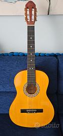 Chitarra classica: tavola colore miele, fondo e fasce mogano rosso, rifinitura bordi color nero. Bottoni in nickel-silver, meccaniche nichelate stabile, scala 650 mm. Larghezza sellette: 52mm, Marcatura su tasti 3/5/7/9/12.
