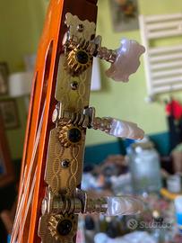 Vendo chitarra De Salvo Mod. CG 20 1/2 NL da bambino. Chitarra in ottime condizioni, suonata pochissimo. Meccaniche e tastiera a posto. Le corde sono da cambiare ma con una pulitina la chitarra è piu che adatta per un livello di studio iniziale. Viene ceduta con la sua custodia morbida. In caso di spedizione spese a carico dell’acquirente. Non rispondo di eventuali danni provocati dal corriere. Preferisco il ritiro a mano su Montecatini, Pistoia o Prato.