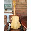 Vendo una bella chitarra di liuteria scuola Reginato. Reginato è stato un importante liutaio veneto. La chitarra è stata costruita dal suo miglior allievo: Beniamino Tonella. La vendo ad un prezzo di vera occasione per chi capisce il valore della liuteria. Il modello nella foto ha il piano di abete e fasce e fondo di acero con una bellissima lavorazione e una vernice stupenda. Suono raffinato con ottimo sustain, di tipo italiano, di qualità. La tastiera, veramente comoda, è di diapason 64 cm. Lo strumento è praticamente nuovo anche se è stato riparato nella giuntura tra manico e paletta da un liutaio che ha fatto un ottimo lavoro. Montata con corde in nylgut è uno strumento delizioso. Vendo con custodia.