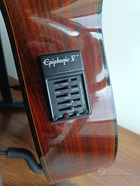Vendo chitarra classica elettrificata Epiphone C70-CE, spalla mancante, acquistata circa 30 anni fa e sempre utilizzata con cura. Effettuato setup in aprile 2026, action comoda, ideale sia per principianti che per chi cerca uno strumento economico ma affidabile. ✔ Tasti in buono stato ✔ Sistema preamp revisionato recentemente, perfettamente funzionante ✔ uscite jack e XLR perfetttamente funzionanti ✔ Suono caldo e bilanciato sia amplificato che acustico Nota: il pannello jack/XLR è stato rifatto artigianalmente dopo la rottura dell’originale. La modifica è solida e perfettamente funzionante. E' Inclusa una custodia morbida La chitarra presenta normali segni di usura dovuti all’età, ma è pronta per suonare subito.