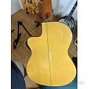 Tavola in cedro canadese massello, retro e lati in palissandro indiano e manico in mogano honduregno con tastiera in ebano. Particolari i tasti: per niente usurati ma piuttosto bassi per scelta costruttiva, così da avere un tocco più morbido.