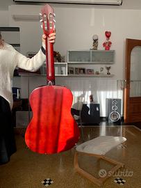 Vendo questa bellissima chitarra classica con una finitura lucida color legno arancio/miele. È uno strumento ideale per chi desidera iniziare a studiare la chitarra o per chi cerca un modello da affiancare al proprio, comodo e facile da maneggiare.