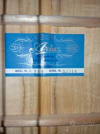 Vendo Aria A553 del 1980, chitarra classica costruita in Giappone, modello di fascia alta dell’epoca. Strumento ben conservato, con materiali di qualità e un suono caldo, equilibrato e molto musicale.