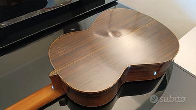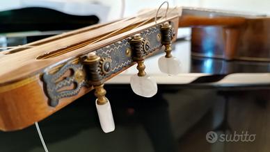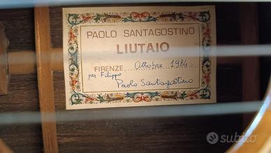 Vendo chitarra classica realizzata dal liutaio Santagostino nel 1984. Lo strumento è in perfette condizioni, come da foto; essendo usato presenta alcuni segni di colore sulla tastiera. È provvisto di custodia rigida. Le corde di ricambio in foto sono in omaggio.