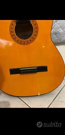 Vendo chitarra Classica anno 2015 completo di nuovo kit corde, barré e custodia. Come visibile in foto presenta una piccola scheggiatura sul bordondella cassa armonica.