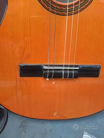 Vendo chitarra classica di Miguel Angel, Valentia. Completa di custodia morbida nera. Manca 1 corda ed è un pochino rovinata sul retro del manico in alto (vedi foto numero due) ed in basso davanti. Questo non ne preclude l'utilizzo. Per il resto è perfettamente funzionante.