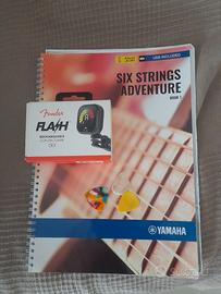 Chitarra classica 6 corde per principiante, completa di custodia in tessuto,accordatore Fender elettronico,nr.3 plettri e libro Yamaha di esercizi musicali. Prezzo leggermente trattabile