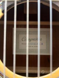 Vendo chitarra classica Compania, con custodia. Usata pochissimo, in ottimo stato. Ha solo un piccolo disegno di abbellimento dipinto in pittura acrilica.