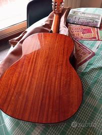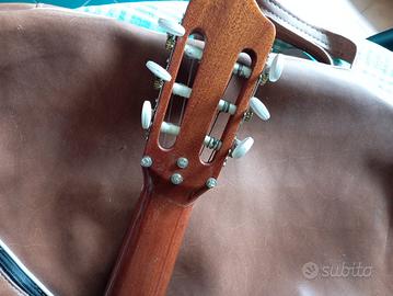 chitarra classica Clarissa,cedo per inutilizzo.Tenuta bene con custodia in similpelle,segnalo piccolo incidente riparato da centro specializzato.Nelle foto è evidenziata la condizione dopo la riparazione,includo un volumetto con corso accelerato.Solo consegna a mano,per ovvi motivi.