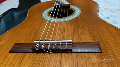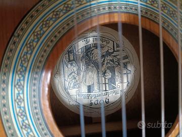 chitarra classica Hopf. con custodia di pelle inclusa. ha il manico mobile per regolare l azione .