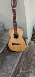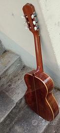 Vendo chitarra classica brasiliana senza alcun dubbio Giannini ( purtroppo è priva dell'etichetta ) Costruita a San Paolo del Brasile negli anni 70/80. Diapason corto e tastiera stretta,ottima per chi è abituato alla chitarra acustica. Suona molto bene ed è comoda da usare anche come chitarra 'da viaggio'. Corde in ottime condizioni. Eseguita oliatura tastiera e meccaniche, ripulitura tasti e dello strumento interno/esterno. Vendo altre chitarre classiche d'epoca Julve , Di Giorgio, Musikalia, Giannini,Eko , Martinez Gendra, Tatay, Dis-com, Rodriguez