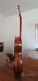 Vendo chitarra Classica Pedro Martinez Cadaques Mod. NAVARRA fine anni’70 con custodia rigida, corpo in abete e laminato, fasce e fondo in legno zebrano, manico in mogano e ponticello e copri paletta in palissandro indiano. Mosaici su rosetta, ponte e copri paletta. Corde da sostituire e cambiare perni della meccanica + pulizia tasti e set up da fare (circa 120 € stima di un liutaio di Udine per essere perfetta).