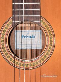 Vendo chitarra Classica Valenziana da Concerto "PRIVADA P5" nuova di fabbrica costruita nel 2008 con materiali selezionati di alta qualità (fasce e manico in mogano, tastiera in palissandro, meccaniche dorate, chiavi in madreperla, corde Hannabach) con custodia rigida e, anche essa, nuova di zecca. Ribadisco che lo strumento è ASSOLUTAMENTE NUOVO e mi riservo di dare tutti i chiarimenti in proposito a chi lo volesse acquistare.