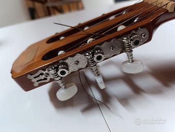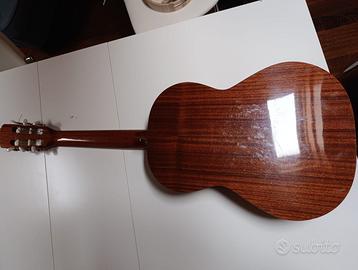 Chitarra classica utilizzata solamente per 3 anni. Tenuta in buono stato e con ancora le corde presenti. Presenta qualche leggera ammaccatura come si vede nelle foto, ma non è stata rovinata in nessuna delle sue parti fondamentali.