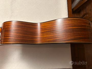 Splendida chitarra classica, top in cedro rosso, fasce e fondo in palissandro indiano. E’ presente una riga sul top come si vede in foto che non pregiudica la qualita’ del suono ma che consente di proporla ad un prezzo particolarmente competitivo rispetto alle altre in vendita. Dotata di custodia rigida. Consegna a mano