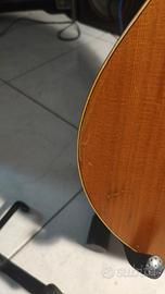 È uno strumento fatto in Spagna (come da targhetta interna) con tavola in massello e rifinitura satinata. La chitarra presenta evidenti segni di usura che non ne compromettono assolutamente il suono è la robustezza.