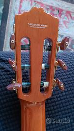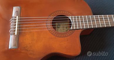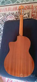 Chitarra classica 4/4 con cutaway ed elettronica integrata, pensata per chi suona sia in acustico che amplificato. Sta a metà tra strumento da studio avanzato e chitarra da palco. Top: cedro massello Fondo e fasce: mogano sapele Manico: attacco spagnolo (più trasmissione delle vibrazioni) Tastiera e ponte: palissandro Capotasto e selletta: osso Scala: 650 mm Capotasto: 52 mm Struttura classica, ma con una costruzione curata per stabilità e resa sonora. Timbro caldo e rotondo (tipico del cedro) Buona proiezione e definizione sulle medie Risposta immediata al tocco. Il sapele aggiunge un equilibrio generale, senza scavare troppo nei bassi. Sistema Fishman Presys I Suono amplificato abbastanza naturale, senza eccessiva compressione Pensata per live semplici o registrazioni rapide, senza bisogno di microfonazione. Cutaway: accesso comodo ai tasti alti Manico classico (52 mm): standard, non stretto Presenza di truss rod (non scontata sulle classiche) Comoda, soprattutto per chi alterna classica e moderno.