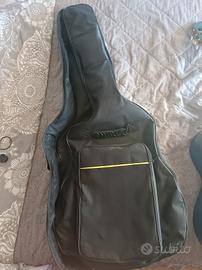Vendo chitarra classica marca Eko usata per 3 anni. Presenta qualche graffio e danni un po' più gravi con foto allegate. Vendo per inutilizzo. vendo insieme ad essa: