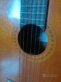 Chitarra classica vintage della Yamaha prodotta in Indonesia, dovrebbe essere degli anni 80/90. Non è in perfette condizioni perché è stata su una barca a vela per tutto il tempo, navigando tra il sud Italia e in Grecia. Ha una bella storia alle spalle ma ha ancora tanto da suonare e cerca qualcuno che possa accontentarla. Perfetta per chi vuole iniziare a suonare questo fantastico strumento, ma anche a chi vuole incimentarsi nel restauro... suona bene anche nelle condizioni in cui si trova ora.