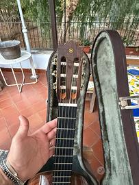 Chitarra Classica Yamaha acquistata nuova ed usata 4 mesi. Riposta nella custodia in foto per 35 anni. Condizioni pari al nuovo ad eccezione di una piccola abrasione come da foto. In vendita insieme alla custodia.