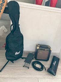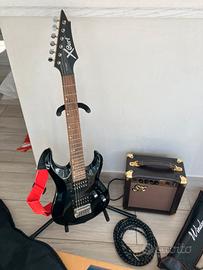 Chitarra elettrica 3/4 Cort X1 Junior usata poco, ottime condizioni. Completa di tutto cio che serve per iniziare: custodia, supporto piede, leggio, supporto chitarra, cavo e cassa.