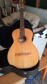 Chitarra da concerto prodotta da laboratorio di liuteria artistica Antonio Monzino di Milano. Modello Spagna del 1965 n. 6087. Tenuta maniacalmente è appartenuta ad un Maestro di musica dell’orchestra della Rai di Torino. Appena uscita da liutaio, corde nuove. Pregiata custodia nuova.