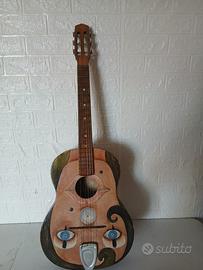 chitarra acustica artigianale e dipinta a mano, pertetta come oggetto d'arredo o da collezione. Lo strumento presenta una decorazione unica.