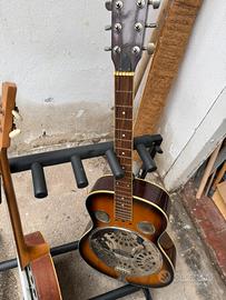 Vendesi chitarra resofonica marca florencia piu banjo vintage con corde da sostituire. Incluso supporto per 5 chitarre. Vendo per inutilizzo. Eventuale spedizione a carico dell acquirente