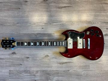 vendo Eko DV-10 come da foto con pickup Bertozzi VG1 Caratteristiche chitarra * Body: Catalpa * Manico: Acero * Profilo: C-Shape * Capotasto: 42mm * Scala: 630mm * Raggio: 14" * Tasti: 22 * Pickup: H-H covered * Meccaniche: Cromate Die-Cast * Hardware: Ponte fisso * Colore: Rosso trasparente Caratteristiche pickup VG1 (PAF Plus) *Avvolti con filo inusuale con minor resistenza *magneti Alnico 2 manico *Alnico 5 ponte *resistenza 6.5Kohm manico *7.3Kohm ponte *induttanza circa 4H manico *5H ponte *spaziatura 50mm manico *52mm ponte